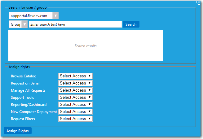 1. Click Assign Rights to add the user or group.